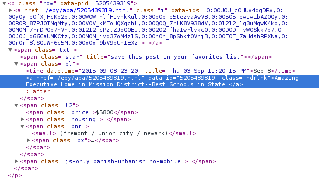 So, this ought to output a list of URLs we'd be interested in (apartments listed on Craigslist for rent in Sunnyvale).